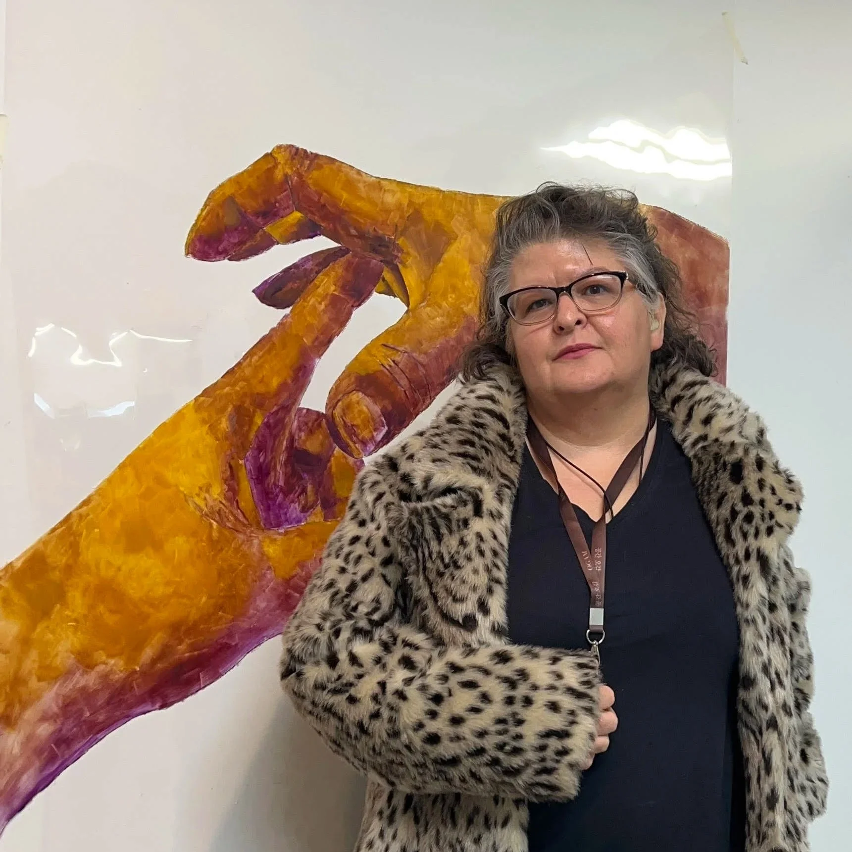 Laurie M. Landry is a Deaf Canadian artist particularly intrigued by the ways in which hands and bodies can communicate ideas without speaking. In her oil paintings on canvas and panels, she focuses on the power of hands to convey meaning and emphasize unspoken statements, using gestural imagery with contemporary subjects. -